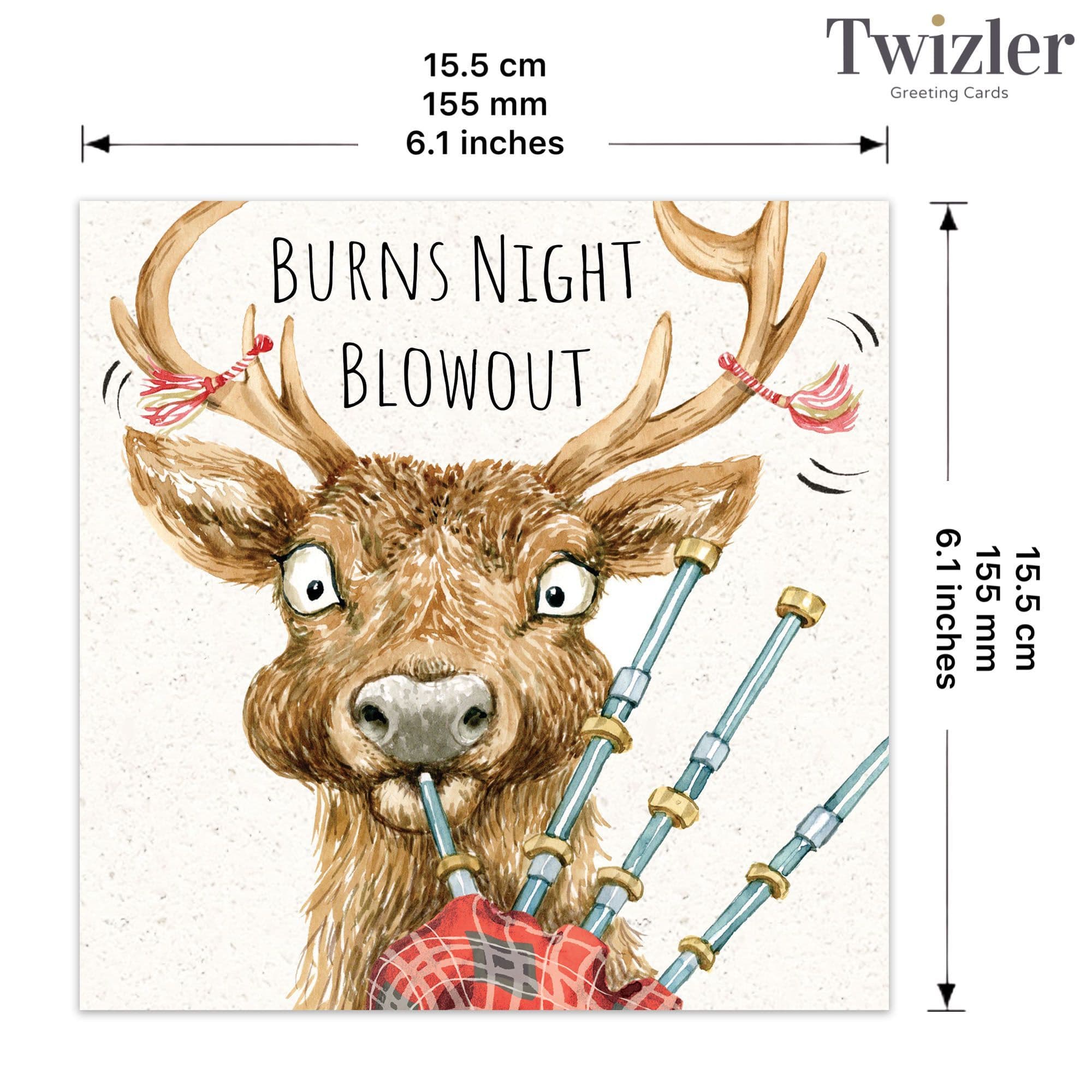 > This card measures 155mm x 155mm square and is printed on high quality card stock