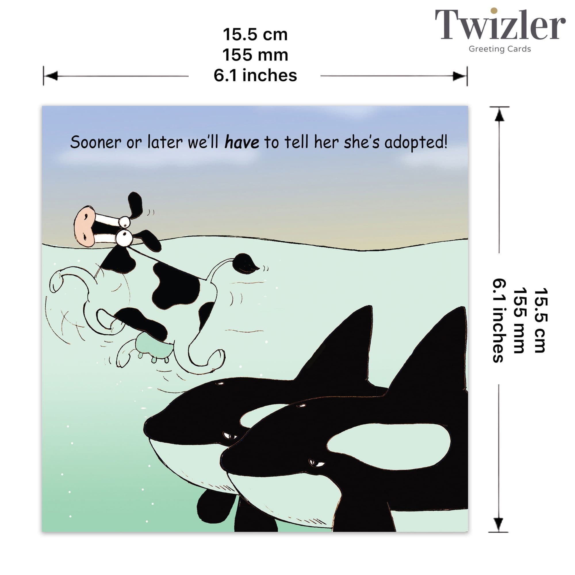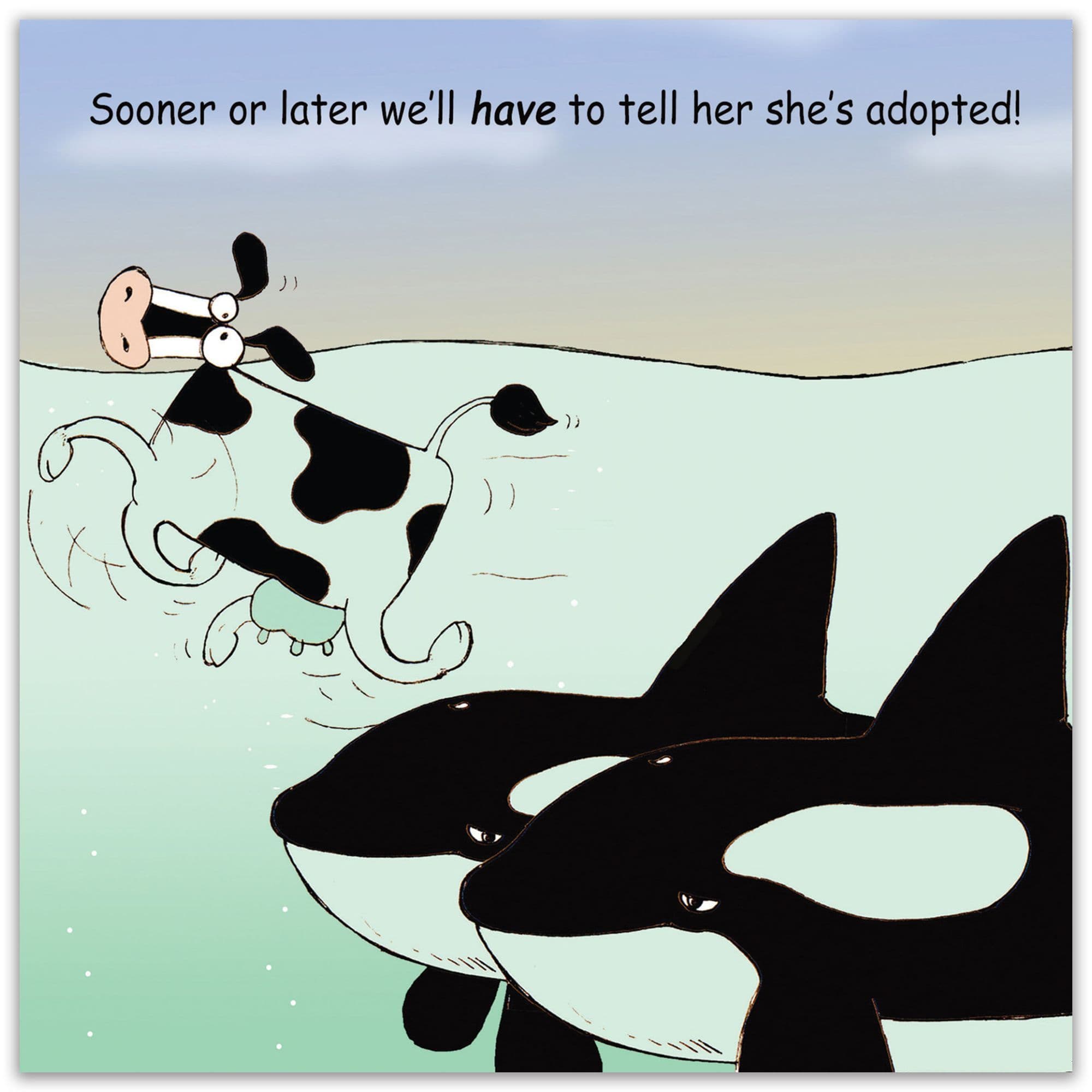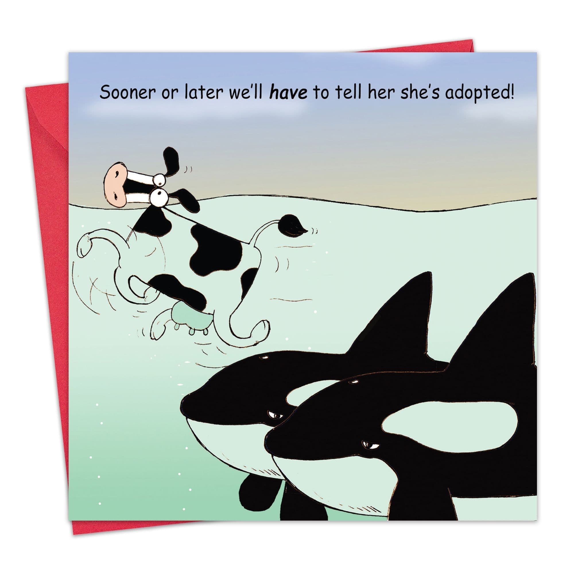 This funny greeting card features whales who are preparing for a difficult question! A great card for anybody who is adopted or perhaps they just love a funny joke! This card is blank inside making it suitable for a variety of occasions.