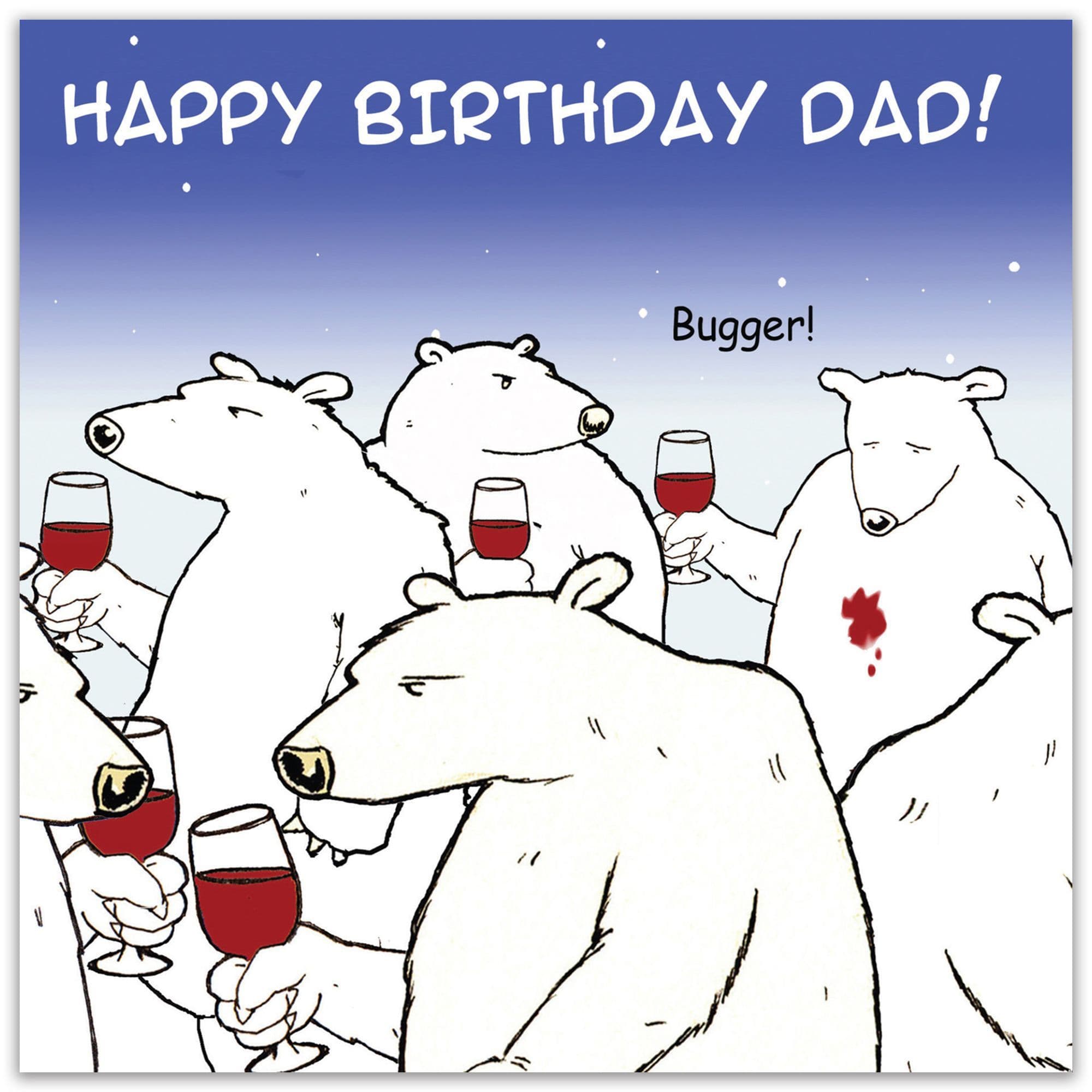 Twizler's funny birthday card for Dad features a Polar Dad with a Code Red situation! There's always one. A fantastic card for any Father especially one who likes red wine! This card reads Happy Birthday on the inside.