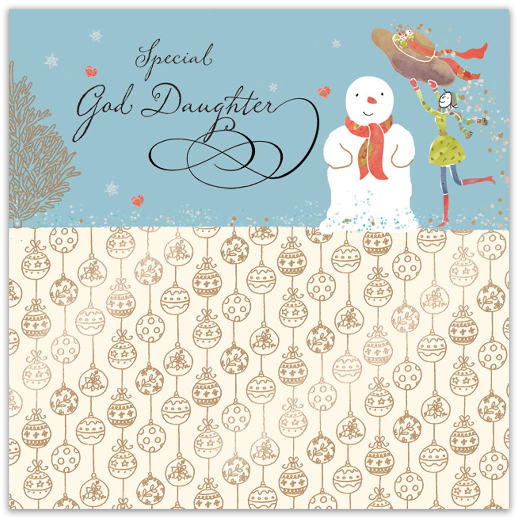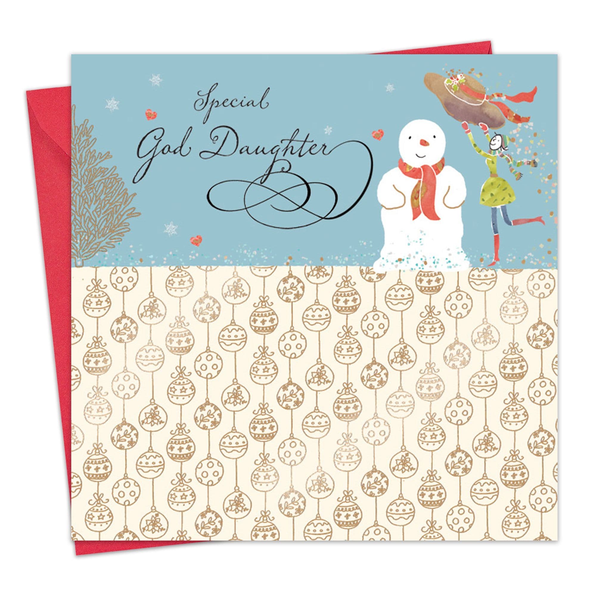 God Daughter Christmas Card with Gold Foiling, Contemporary Design and Red Envelope