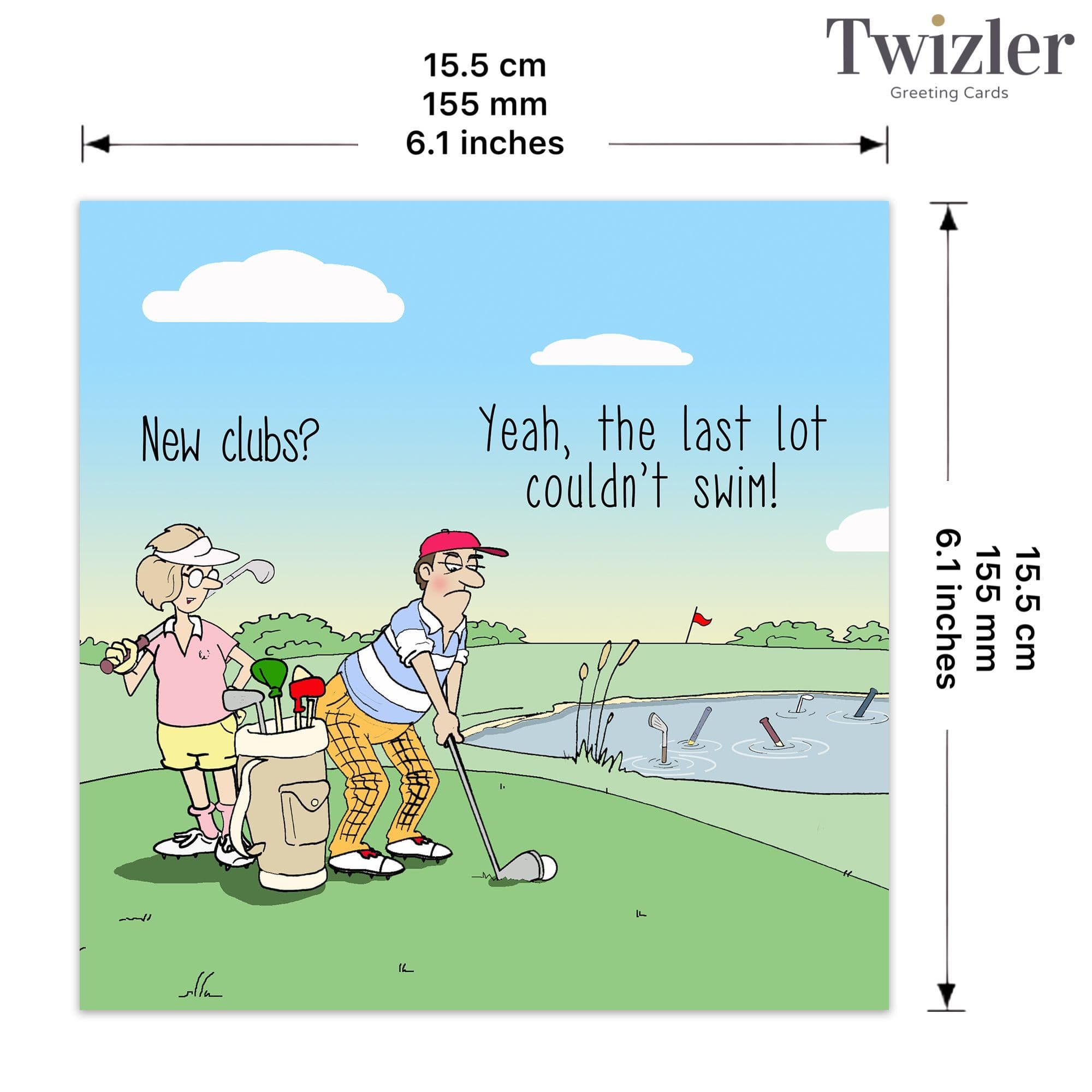 This humour card features a man who has some high expectations of his golf clubs! A great card for a golfer. This card is blank inside making it suitable for a variety of occasions including Fathers Day Card and Valentines Day.