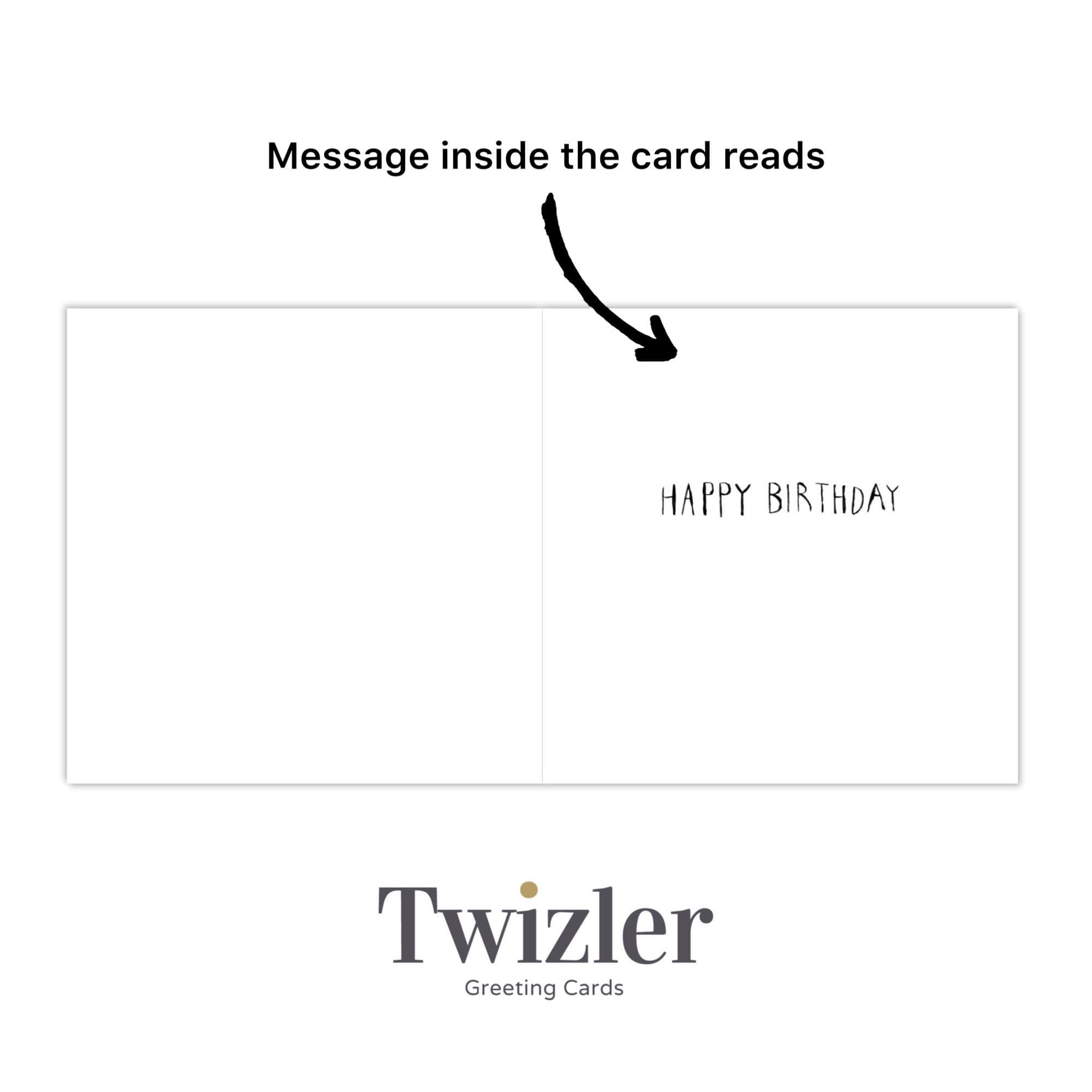 The words on the front of the card reads Happy Birthday.