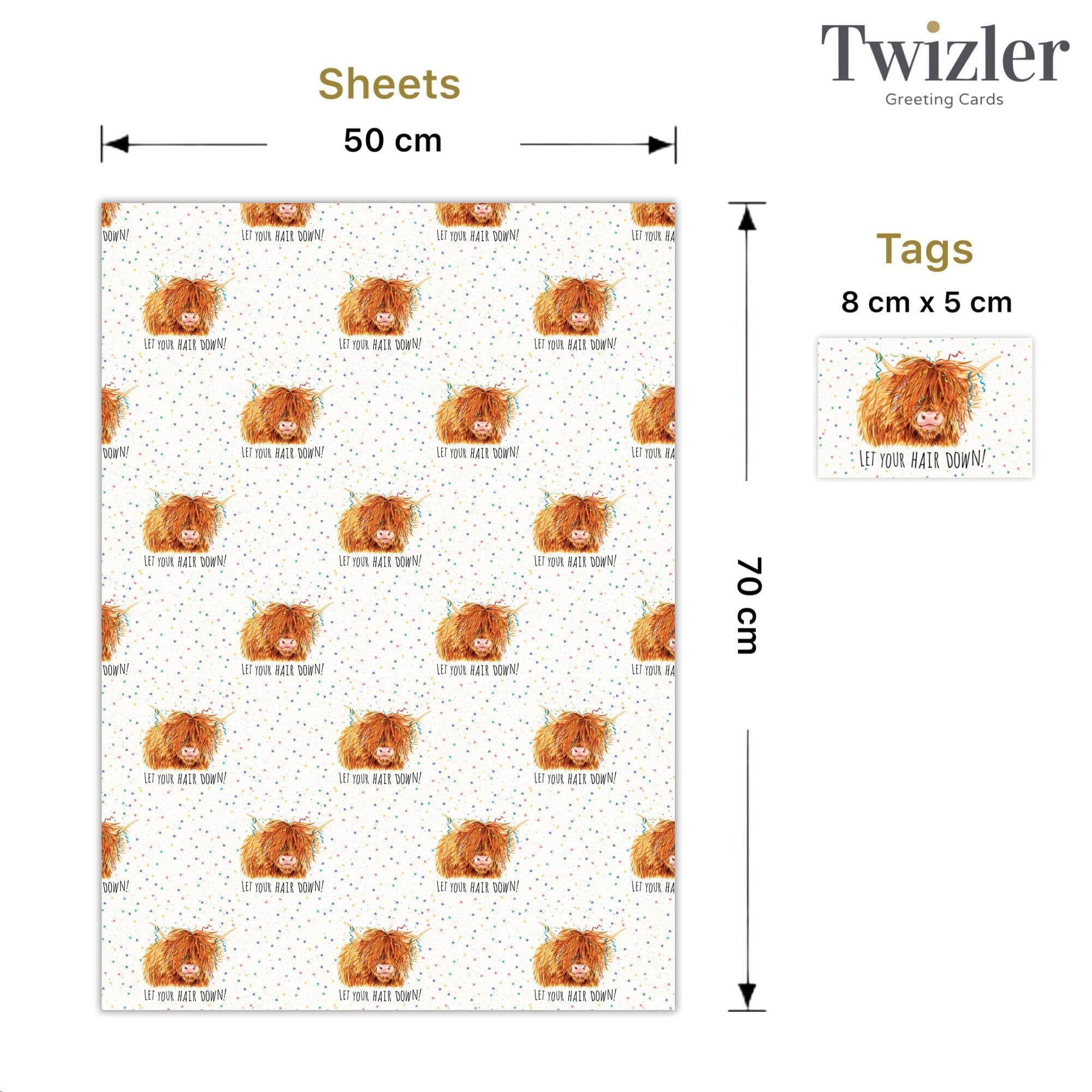 This Wrapping Paper includes 4 sheets with 4 matching tags and string. This gift wrap comes folded, not rolled, and is shipped in a strong envelope for extra protection.