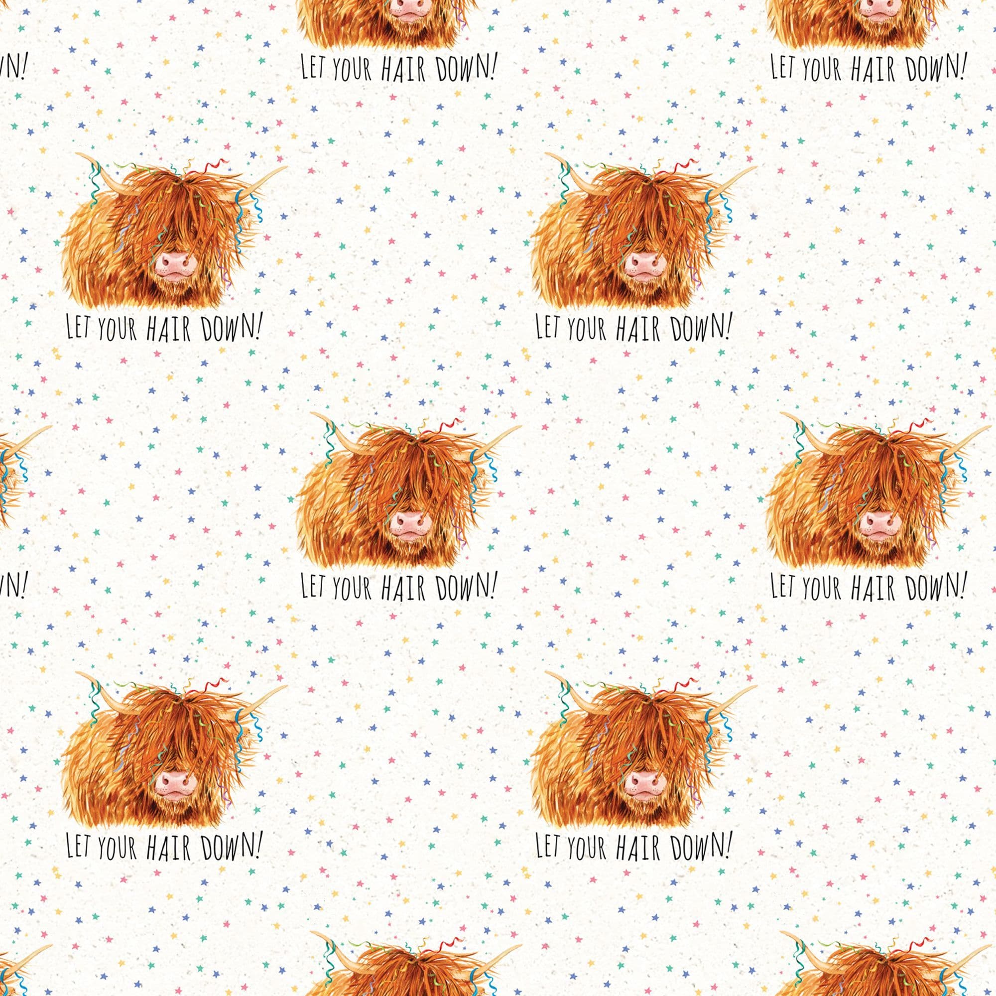 Happy Birthday Wrapping Paper - Women Scottish Highland Cow - 4 Sheets & 4 Tags - Funny Gift Wrap